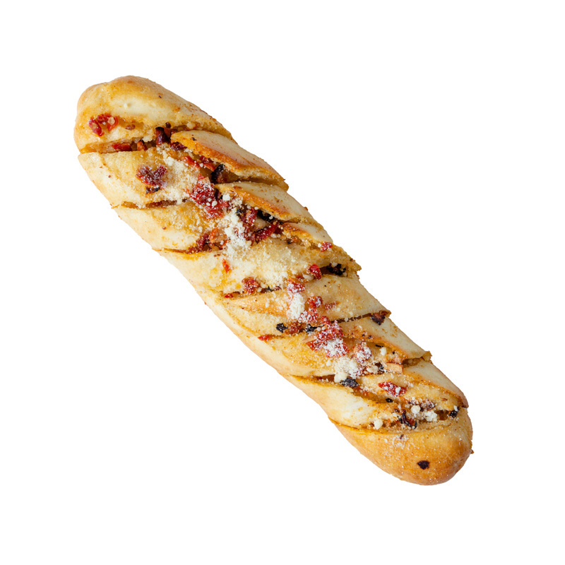 Atıştırmalık kategorisinde değerlendirilebilecek sarımsaklı ekmeklerimiz çeşidine göre sarımsak, tereyağı ve parmesan karışımının fesleğen sos ya da güneşte kurutulmuş domates ile bir araya getirilip dilimlenmiş baget ekmek ile buluşturulması sonucu, yarı pişmiş olarak beğeninize sunulur.