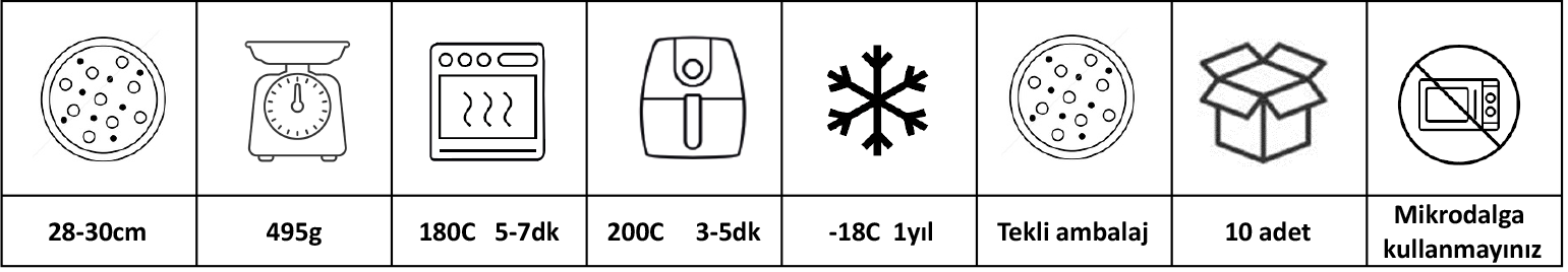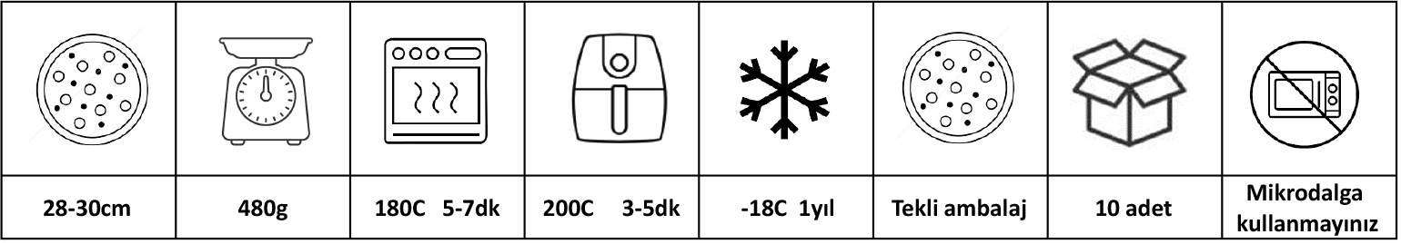 Yüksek proteinli un, su, tuz ve maya ile usulüne göre hazırlanan hamurun kademeli dinlendirilmesi ve tek tek elde açılarak şekillendirilmesi, üzerine domates sosu ve mozarella gibi geleneksel malzemelerin yanı sıra isteğe göre malzeme ile topinglenmesi sonucu elde edilen üründür. Pişirme işlemi yüksek sıcaklıkta kısa süre içerisinde gerçekleştirilir ve çıtır dış kabuğu ve yumuşak iç yapısı ile yeme hazzını pekiştirir. Talebe göre istenilen ebatlarda üretimi yapılır.