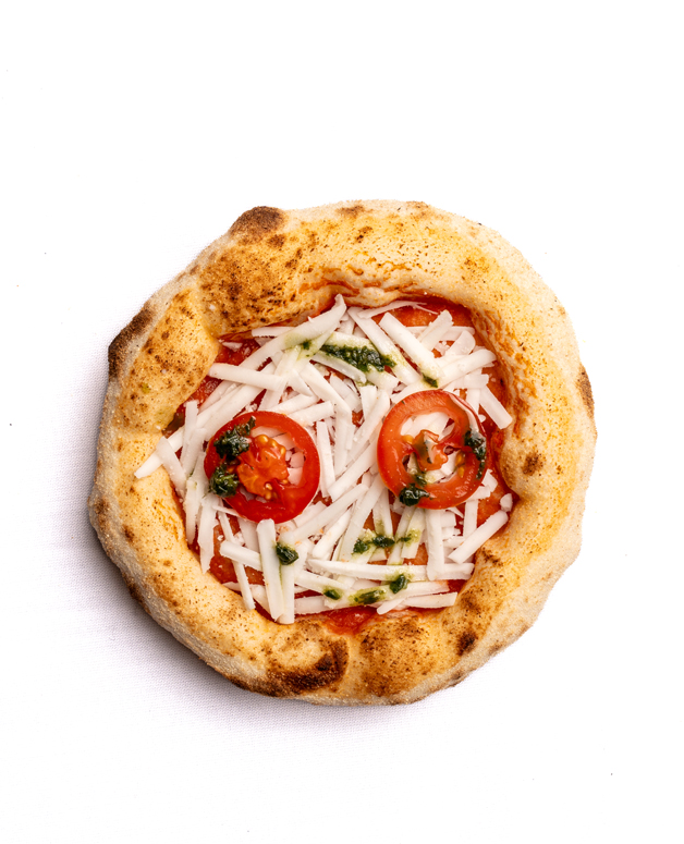 Mini Vegan Pizzalarımız 72 saate yakın mayalanan, 3 aşamalı hazırlık sürecinden geçen vegan Napolitan hamurun kalın kenarlı olarak tek tek elle açılmasıyla elde edilir. Reçete ve ebat talebine göre ürün üretilebileceği gibi, mevcut üretilen ürün bilgileri aşağıdaki gibidir.